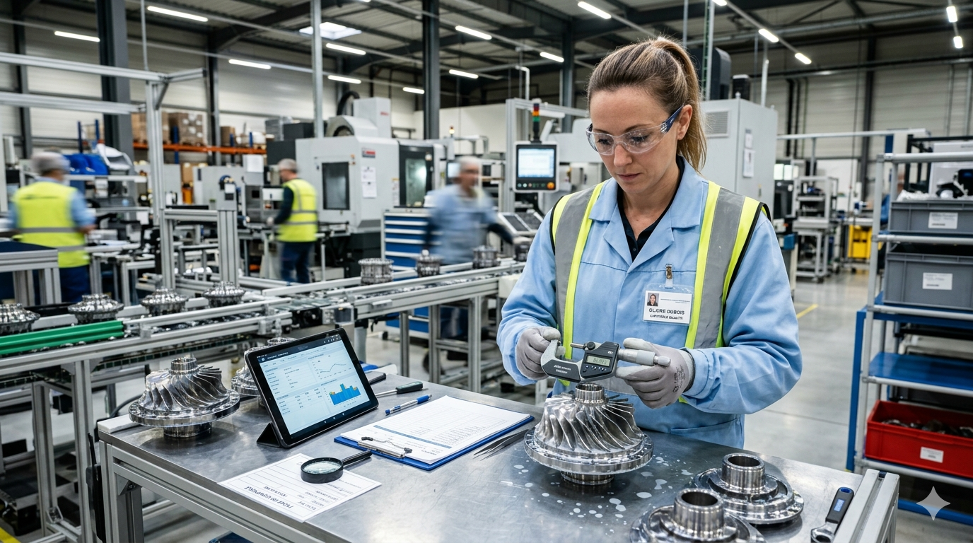 Vous contrôlez les matières premières à leur réception, les produits en cours de fabrication, puis les produits finis avant expédition. Pied à coulisse, jauge, machine à mesurer tridimensionnelle (MMT) — chaque pièce doit être conforme aux spécifications techniques. Dès qu'un écart est détecté, vous pouvez déclencher un arrêt de production.